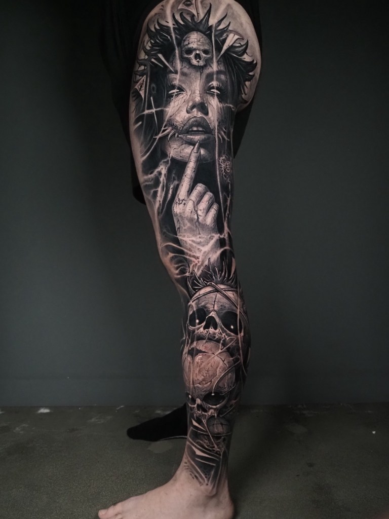 Also specialising in black and grey realism, portraiture, graffiti style lettering and abstract tattoos.